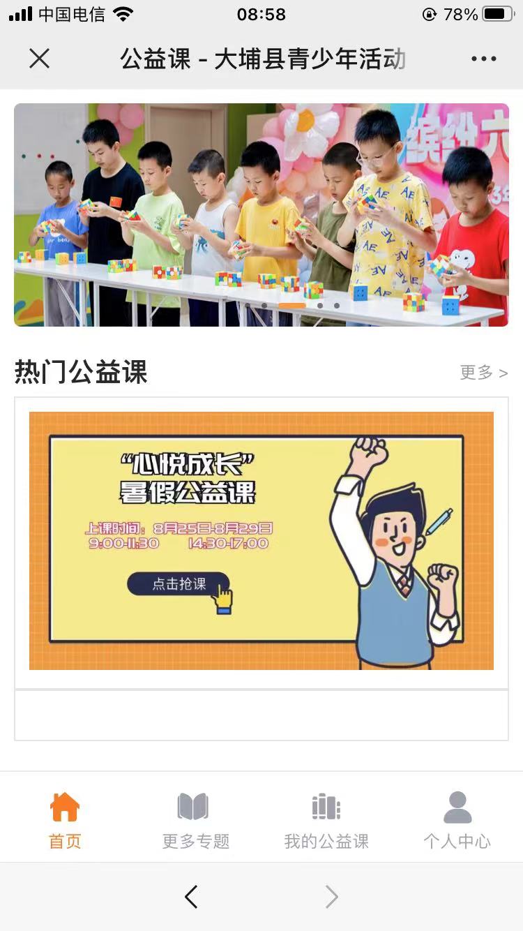 主要用于活动中心推出的公益课在线报名