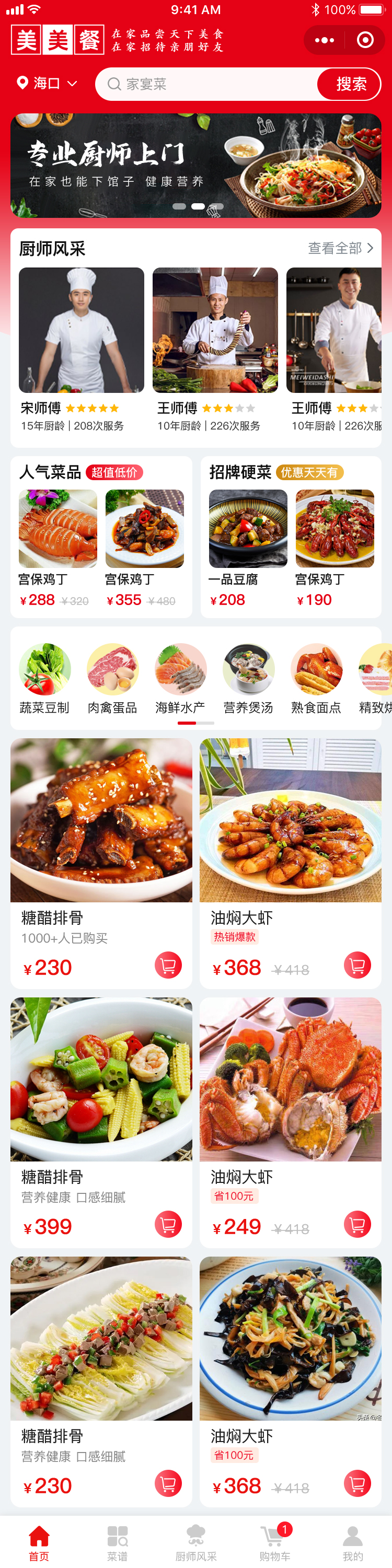 主要用于展示平台厨师擅长的菜谱,可以提供给需要私房菜定制的客人点餐